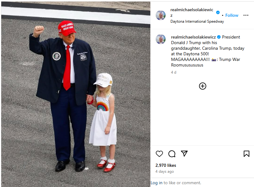Although Trump’s attendance at the Daytona 500 was already widely reported, Carolina’s presence gave the occasion even more allure.