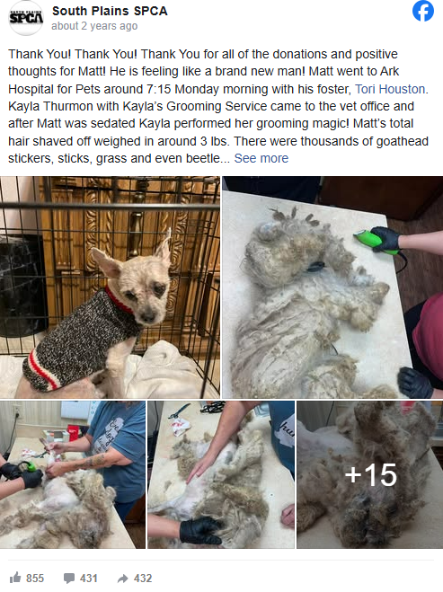 The South Plains SPCA took him in and named him Matt, after his matted fur. Despite the terrible condition they found him in, they resolved to fix him up and give him a second chance.