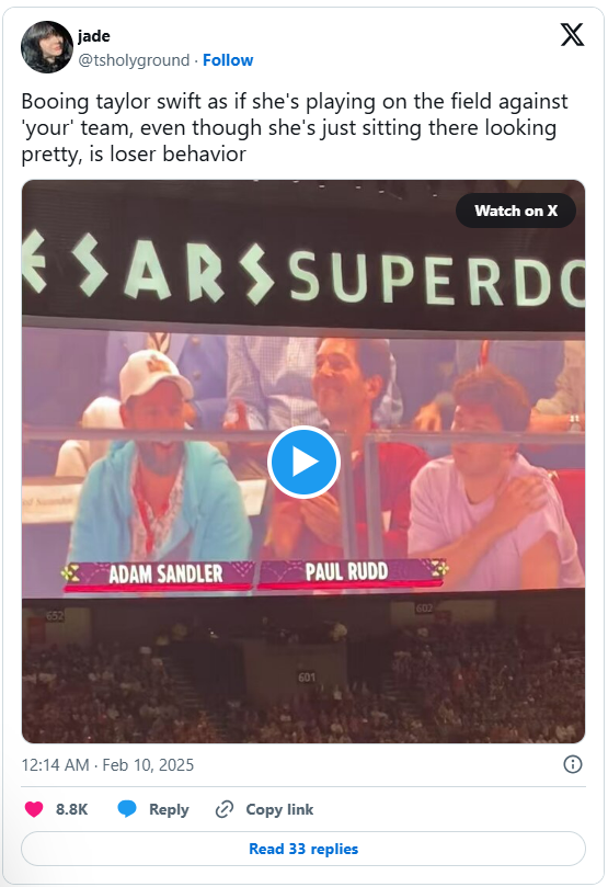 Many fans on social media think they have figured out why Swift was booed during the game, which ended in a loss for the Chiefs.